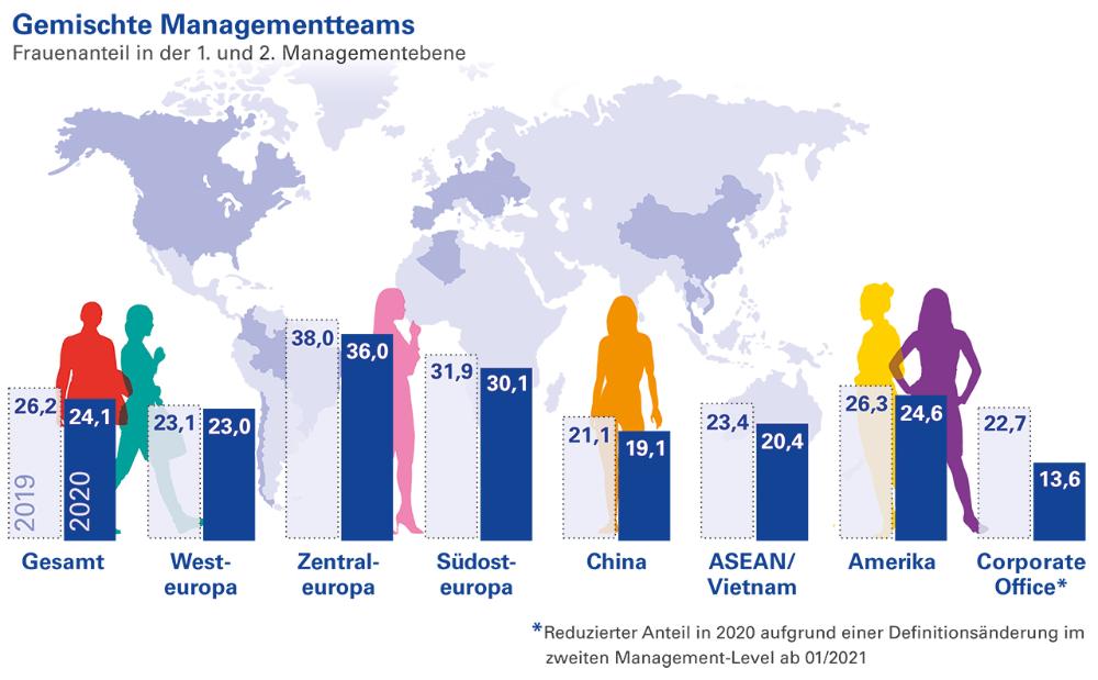 Offener Dialog und interner Know-how-Transfer sind uns wichtig. Daher fördern wir überregionale und interkulturelle Netzwerke. Im Jahr 2020 gab es 15.559 Teilnahmen an zumeist virtuellen Standortversammlungen oder Netzwerkmeetings zur strategischen Integration oder zum Know-how-Transfer; zum Vergleich: Im Jahr 2019 waren es 8.369.